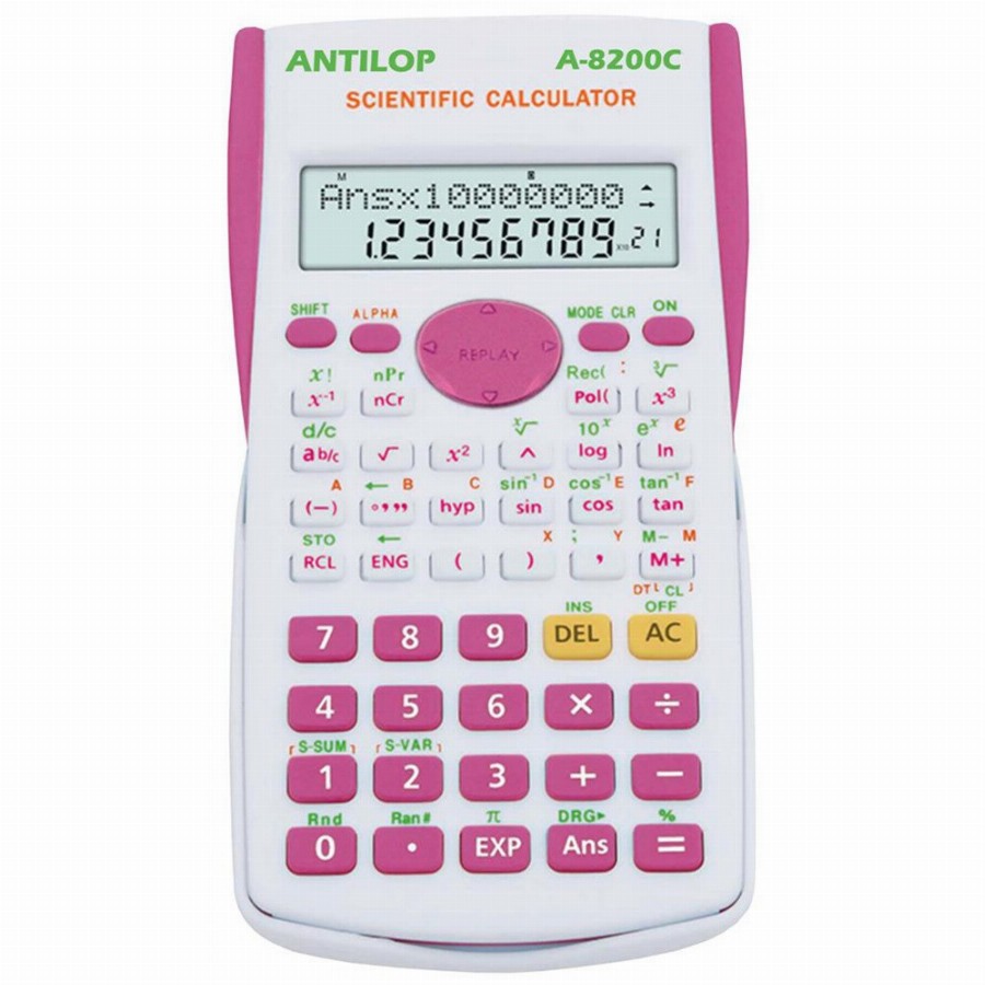 SZÁMOLÓGÉP TUDOMÁNYOS 240 FUNKCIÓS A-8200C PINK ANTILOP A-8200C 240 funkció, statisztikai számításokhoz alkalmas menű, 2 soros kijelző, 12 és 10+2 karakter, felső sor: dot matrix, 1 független memória, 8 állandó memória, SCI/FIX/ENG. funkció százalék számítás, 24 zárójel, ismétlés, lineáris regresszió, trigonometriai, hiperbolika törtszámítás, időszámítás, DEG/