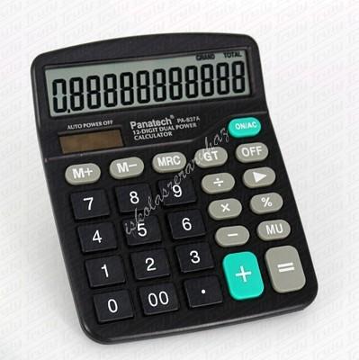 Számológép Panatech 837A 12 karakteres, döntött, nagy kijelzős asztali számológép Memória, visszaléptető, grandtotal funkcióval elemmel és napelemmel is működtethető