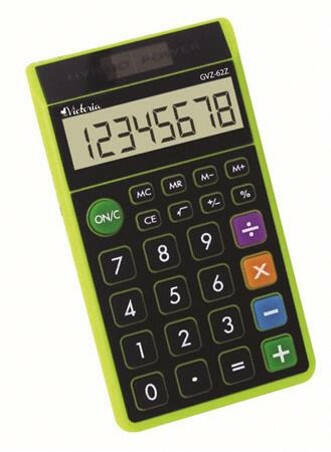Termékjellemzők: - Zsebszámológép. - színes ház. - 8 számjegyes kijelző. - kétféle áramforrás (elem + napelem). - memória. - gyökvonás. - százalékszámítás. - automatikus kikapcsolás. - méret: 11x6,5 cm. - 1 db 1,55 V-os gombelemmel (tartozék) + napelemmel működik. - garancia: 1 év.