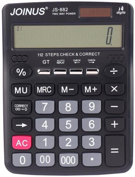 Számológép 14 számjegyű kijelzés Joinus Nagy - JS-882 - 14 karekteres Óriás kijelző- Nagy gombok, nagy számok- Extra gombok- 1db "AA"-s elemmel működik (nem tartozék)- Napelem- Mérete10x10x5 cm