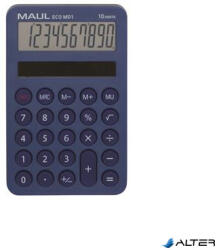 Fenntartható, kis méretű asztali számológép. -szín: kék -10 számjegyes, 1 soros, LCD kijelző -3 gombos memória -"%" gomb -gyökvonás -"+/-" gomb -automatikus kikapcsolás -gumírozott gombok -napelemmel működik, nincs benne elem , amit cserélni kellene -a készülék működéséhez szükséges minimális fényerősség 50 lux -a ház 60 %-ban újrahasznosított műanyagból készü