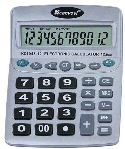 Számológép 12 számjegyű Nagy - Kcanvovi KC1048-12 - 12 karekteres Óriás kijelző- Nagy gombok, nagy számok- 1db "AA"-s elemmel működik (nem tartozék)- Napelem- Mérete15,5x20,5 cm