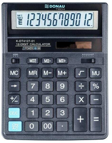 Asztali számológép K-DT4127-01K-DT4121-01 Számológép 12 számjegyes kijelzővel és műanyag gombokkal. Fekete szín. 5 év garancia. Műszaki specifikáció: a % és a négyzetgyök kiszámítása kerekítés MU függvény az árrés kiszámításához az utolsó pozíció törlése kettős memória jelváltozások +/- dupla nulla automatikus kikapcsolás kettős tápegység (napelem + akku