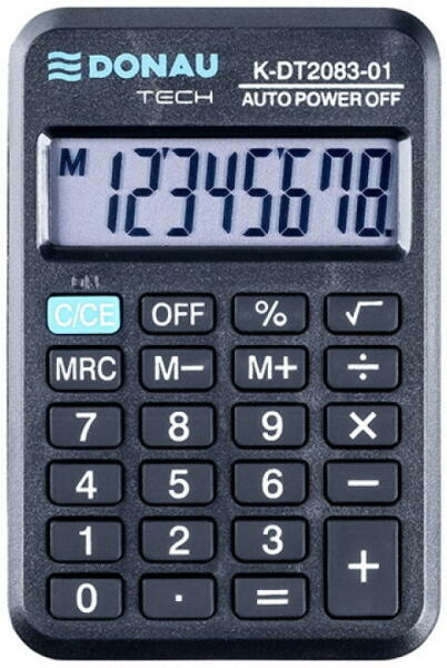 Számológép 8 számjegyes kijelzővel és gumi gombokkal. Fekete szín. 5 év garancia. Műszaki specifikáció: a % és a négyzetgyök kiszámítása automatikus kikapcsolás kettős tápegység (napelem + akkumulátor) méretek 56 x 89 x 11 mm.