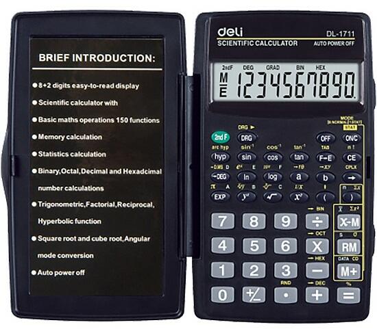 Számológép, tudományos, 56 funkció, DELI Easy, fekete