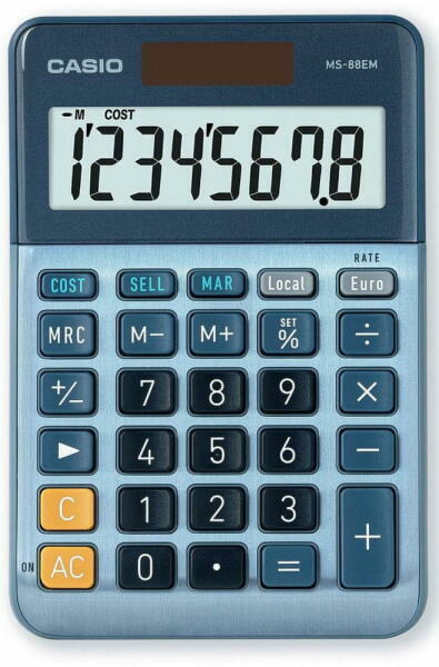 Gyártó: Casio Modell: MS-88EM Leírás: Alkalmas egyszerű és összetettebb számításokhoz – megbízható asztali számológép A Casio MS 88 EM háztartásban hasznos az olyan funkcióknak köszönhetően, mint a pénzváltás, a százalékok professzionális kiszámítása, és megörvendeztet a 8 számjegyű LCD kijelzővel is. Kettős tápegységgel, fém panellel, gumilábakkal és a g