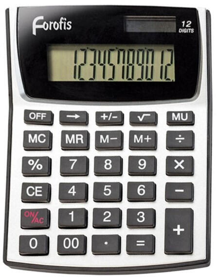 Számológép asztali FOROFIS midi 12 digites Asztali Számológép MIDI - 12 számjegyes képernyő - LR44 elemmel vagy napelemről működtethető - Méretei: 145 x 108 x 20mm