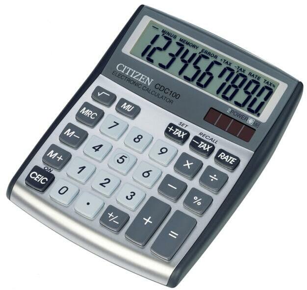 Praktikus irodai számológép Citizen CDC-80WB- szín: ezüst- méretek: 135 x 108 x 14mm- súly: 104g- energiaellátás: akkumulátornapelem- nyolcjegyű kijelző- automatikus leállás- árrésszámítás- memória [MRC] [M ] [M-]- adószámítás- négyzetgyök- százalékok- karakterváltás [ /-]