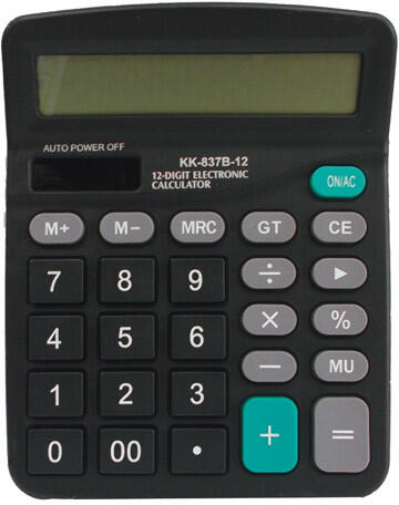 Számológép a mindennapi, gyors használatra. Minden iroda elmaradhatatlan darabja. Office Art asztali számológép, 12 digites 15x12 cm, napelemes, fekete. 12 számjegyű, nagy döntött kijelző, műanyag nyomógombok. 3-kulcsos memória funkció, százalékszámítás, számjegy-törlés funkció. Elemes és napelemes használat. AA elemmel működik, az elem nem tartozék. Automatikus kikap