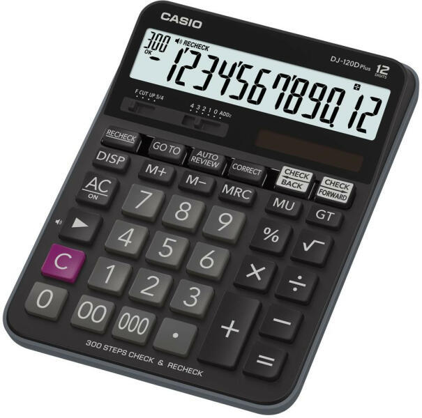 Asztali számológép nagy, 12 számjegyű kijelzővel, DJ 120 D PLUS Asztali számológép nagy, 12 számjegyű kijelzővel Check & Correct funkció ÁFA számítás Buffer 300 számítási lépés ellenőrzése Böngészés és automatikus böngészés Ismételt ellenőrzés hangjelzéssel Go To funkció Javítás gomb GT végösszeg számítás 3 gombos memória +/- gomb 3 számjegyenként