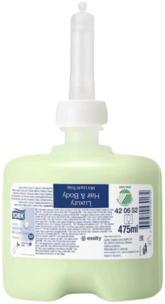 A Tork Luxus sampon és krémtusfürdő pazar minőségű, 3 az 1-ben élményt kínál (egyszerre sampon, balzsam és tusfürdő). Kiváló választás szállodáknak, wellnessfürdőknek és sportlétesítményeknek. llata lágy és elegáns. A benne lévő, kiváló minőségű tisztító és kondicionáló összetevőknek köszönhetően kíméletesen tisztítja a hajat és a bőrt; használat