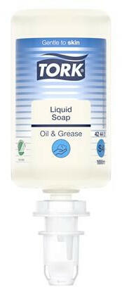 Folyékony szappan, 1 l, S4 rendszer, TORK "Olaj és zsíroldó", átlátszó A szennyeződések, olajok és zsírok eltávolítására a Tork olaj és zsíroldó folyékony szappan zsírbontó összetevőt tartalmaz, amely rendkívül hatékony, mégis gyengéd a bőrhöz. Illatanyag vagy színezék hozzáadása nélkül - kíméletes a bőrhöz. Alkalmas a Tork S4 rendszer adagolókhoz, könnyen