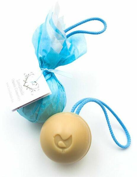 Bőrbarát, természetes alapanyagokból készült zuhanyszappan. A szappan gömb formája megkönnyíti a zuhanyozás közbeni kézben tartást, miközben a szappan közepébe helyezett akasztó révén, könnyen tárolható. Két zuhanyozás közben a szappan így felázás nélkül tud megszáradni és hosszan megőrzi állagát.