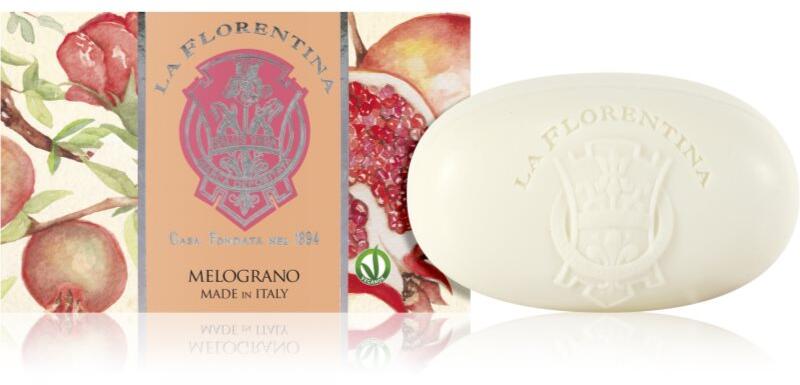 La Florentina Pomegranate Bath Soap, 300 g, szappanok nőknek, A szilárd La Florentina Pomegranate szappan a minőségi higiénia elengedhetetlen készítménye. Hatékonyan tisztíja a bőrt és távolít el róla minden szennyeződést. Tulajdonságok: gyengéden tisztítja a bőrt nem irritálja és nem szárítja ki a bőrt táplál és hidratál kellemes illatú Összetétel: legalább 99%-b