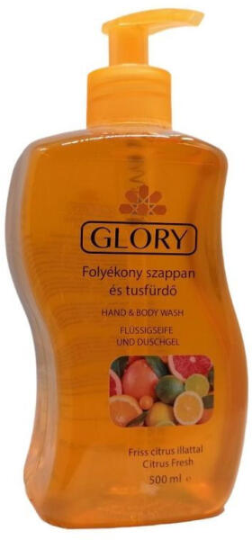 pH semleges folyékony szappan és tusfürdő, melynek glicerin tartalma a bőrt puhává és bársonyossá teszi. 500 ml-es folyékony szappan és tusfürdő; Glory termék a mindennapi higiéniáért.