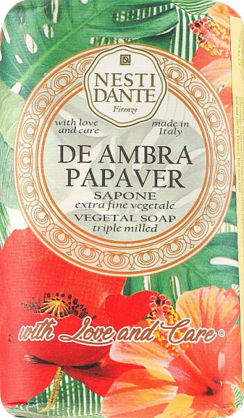 Luxus natúrszappan a mágikus ámbra és a meleg, lágy pipacs illatával. Mint minden Nesti Dante szappan, a legmagasabb minőségi követelményeknek felel meg, kompromisszumok nélkül. Ahol csak lehetséges, organikus eredetű hatóanyagokat tartalmaz. Nem tartalmaz ásványi olajokat, parabeneket, agresszív, mesterséges összetevőket. Vegán kozmetikum: állatkísérleteket és állati er