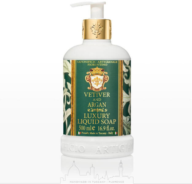 100% növényi folyékony szappan Vetiver és Argan Meleg, szenvedélyes és lenyűgöző illat, amely felszabadítja az erdei fa, a föld, a friss és buja növényzet jegyeit, amelyek édes és meleg tónusokhoz kapcsolódnak. Szakértelemmel megalkotott keverék a jó közérzet közvetítésére és az anyatermészet minden erejének átitatására.