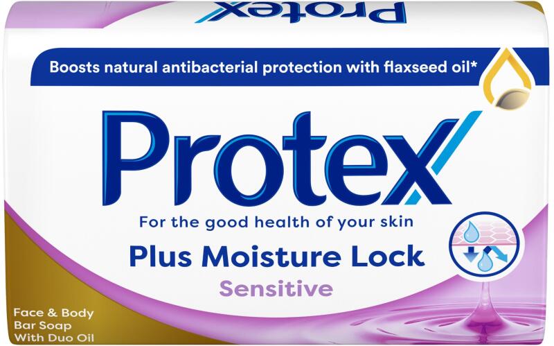 Protex Plus Moisture Lock Sensitive szappan, 90 g Őrizze meg kezei és családja egészségét, védje meg őket a baktériumok ellen az új Protex Plus Moisture Sensitive WC-szappannal! A Protex Plus Moisture Lock Nourishing változathoz képest csökkentett mennyiségű allergén illatanyagot tartalmaz. A Protex Duo olajjal - lenmagolajjal és kendermagolajjal - segít fenntartani a bőr termé