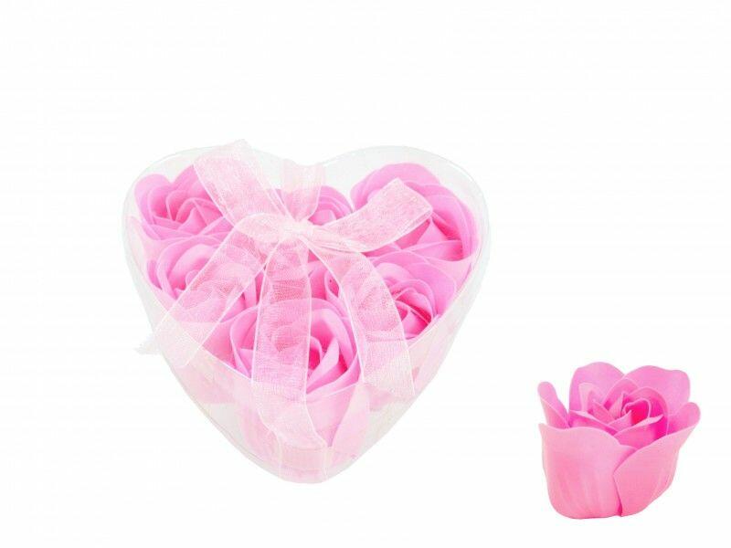 Szappan rózsa szett rózsaszín szív dobozban 6db 4cm 7538 - Ajándék szappan Szappan rózsa szett rózsaszín szív dobozban 6db 4cmBefoglaló méretek 9x10x4 cm