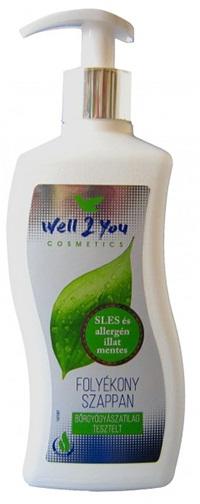 Kiváló Well szappanjaink új generációt képviselő tagja. Ajánljuk mindazoknak akik nem tolerálják az illatanyagokat, mesterséges színezékeket, vegyszereket. Bőrgyógyászatilag tesztelt folyékony szappan, amely nem tartalmaz SLES vegyi anyagot, színezéket, és kellemes allergiamentes illattal készül. Kíméletesen tisztít és ápolja a bőrt. A Well2You folyékony szappan egy ma