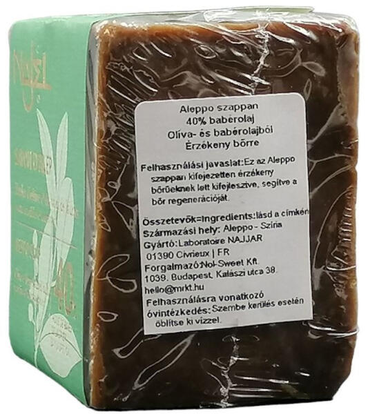 Aleppo szappan 40% babérolaj + Olívaolajból készült. Érzékeny bőrre.