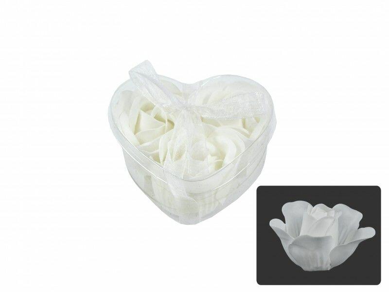 Szappanrózsa szett fehér szív dobozban 3db 4cm 7533 Befoglaló méretek 7.5x7x4 cm