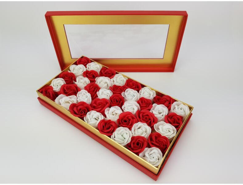 Párunknak, családtagoknak szóló ajándék doboz, anyák napjára vagy születésnapra de nem kell, hogy ünnep legyen, mert az év bármely napján kedveskedhetünk vele. Piros színű, átlátszó tetejű premium doboz, 20-20 darab fehér&piros illatos szappanrózsával. Méret : hossza: 30 cm, szél: 15,5 cm