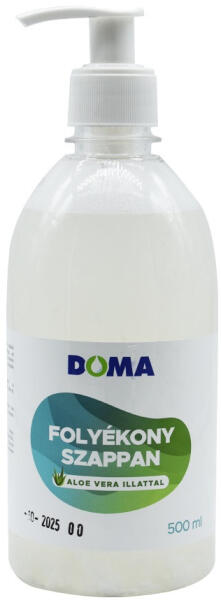 FOLYÉKONY SZAPPAN 500 ML ALOE VERA_DOMA A DOMA Folyékony krémszappan kifejezetten arra lett tervezve, hogy kíméletesen tisztítsa a bőrt kézmosás során. A termék nem csak a lakossági felhasználók számára ideális, hanem az irodákban, vállalati öltözők mellékhelyiségeiben, az egészségügyi intézményekben, az élelmiszeriparban és a vendéglátóiparban is hatékonyan alka