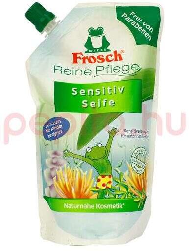 Termék leírása: FROSCH FOLYÉKONY SZAPPAN UTÁNTÖLTŐ GYEREK 500ML Termék összetétele: Aqua, Sodium Laureth Sulfate (tenside), Glycerin, Sodium Chloride, Cocamidopropyl Betaine (tenside), Glyceryl Oleate, Coco-Glucoside, Glyceryl Oleater, Parfum, Sodium Benzoate, Salicylic Acid, Citric Acid A lágyan nyugtató formula a kíméletes és hidratáló összetevőknek köszönhetően, gondosan t