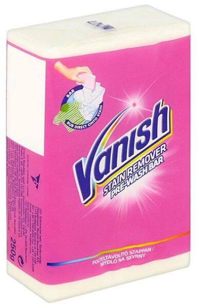 A Vanish folteltávolító szappan kiválóan alkalmas a makacs foltok eltávolítására. Különösen ajánlott ingnyak tisztítására. Klórmentes, ezért színes és fehér ruhához egyaránt használható. Gyapjúszőnyeg tisztításához is ajánljuk.