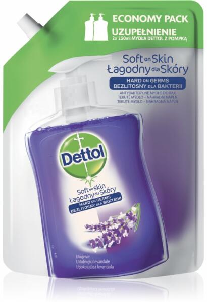 Dettol Soft on Skin Lavender, 500 ml, szappanok nőknek, Azokban a pillanatokban mikor igazán tiszta kezekre van szüksége a Dettol Soft on Skin Lavender szappan lesz a segítségére. Hatékonyan tisztítja a bőrt és eltávolít minden szennyeződést. Tulajdonságok: lezárható utántöltő a könnyű feltöltéshez tisztává teszi a kezet kellemes, friss illat a szappan olyan pH értékke