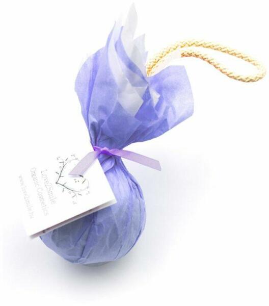Bőrbarát, természetes alapanyagokból készült zuhanyszappan. A szappan gömb formája megkönnyíti a zuhanyozás közbeni kézben tartást, miközben a szappan közepébe helyezett akasztó révén, könnyen tárolható. Két zuhanyozás közben a szappan így felázás nélkül tud megszáradni és hosszan megőrzi állagát.