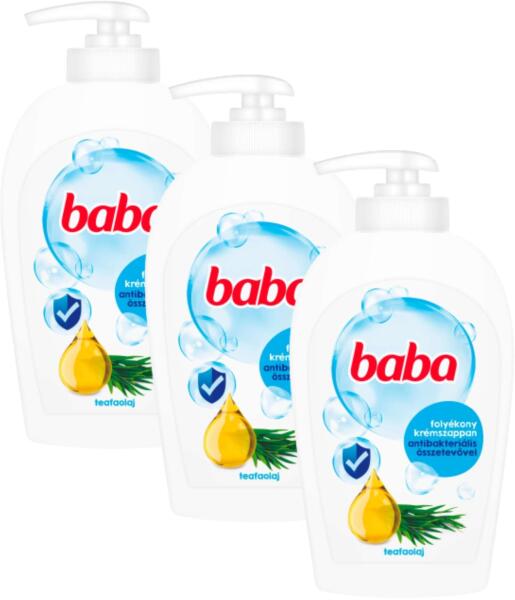 Termék információkTermék jellemzők: Antibakteriális hatású teafaolajjal Folyékony szappan Eltávolítani a baktériumokatAz anyukák sokat tesznek a családtagok egészségének megőrzéséért. Ebben a feladatukban támogatja őket a Baba folyékony szappan, mely természetes eredetű és antibakteriális hatású teafaolajat tartalmaz, segít eltávolítani a baktériumokat, így küzd