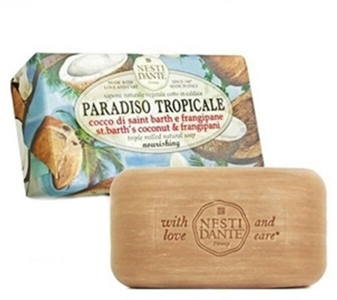 A megszokott Nesti Dante szappanok egzotikus, trópusi illatokban. Friss és étvágygerjesztő! Feszesítő hatásánál fogva ideális hölgyeknek és uraknak egyaránt. Összetevők: Sodium Palmate, Sodium Cocoate/Sodium Palmkernelate, Aqua, Parfum, Passiflora Edulis Fruit Extract, Glycerin, Sodium Chloride, Tetrasodium Etidronate, Pentasodium pentetate