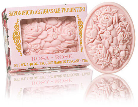 Gyönyörűen illatos olasz természetes szappan. Egyedileg csomagolva egy díszdobozban. Dermatológiailag tesztelt. Készült Olaszországban. Összetevők: Nátrium-palmiát, nátrium-ko-koát, enzim, glicerin, illatanyag, nátrium-klorid, titán-dioxid, tetrátrium-etridonát, tetranátrium-edta. Súly: 125 gGyártó: SAPONIFICIO ARTIGIANALE FIORENTINO