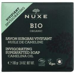 A NUXE Bio Organic Invigorating Superfatted Soap Camelina Oil szilárd bioszappan gyengéden és hatékonyan távolítja el a szennyeződéseket, a felesleges faggyút és a sminkmaradékokat a testről és az arcról és ellenállhatatlan energizáló narancsillatot áraszt.