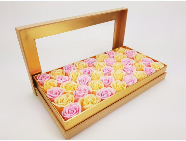 Párunknak, családtagoknak szóló ajándék doboz, anyák napjára vagy születésnapra de nem kell, hogy ünnep legyen, mert az év bármely napján kedveskedhetünk vele. Natúr színű, átlátszó tetejű premium doboz, 20-20 darab krém & rózsaszín illatos szappanrózsával. Méret : hossza: 30 cm, szél: 15,5 cm