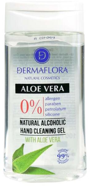 A Dermaflora Natural Cosmetics 0% aloe vera alkoholos kéztisztító gél 99%-ban természetes összetevőket tartalmaz, bőrápoló anyagokkal gazdagított kéztisztító termék.