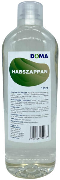 A DOMA Habszappan, habszappan adagolóval adagolva, puha habot képez a kézen. Így a kézmosás nem csak kellemesebb érzés, de takarékosabb is. A DOMA Habszappan kifejezetten arra lett tervezve, hogy kíméletesen tisztítsa a bőrt kézmosás során. A termék nem csak a lakossági felhasználók számára ideális, hanem az irodákban, vállalati öltözők mellékhelyiségeiben, az egészs