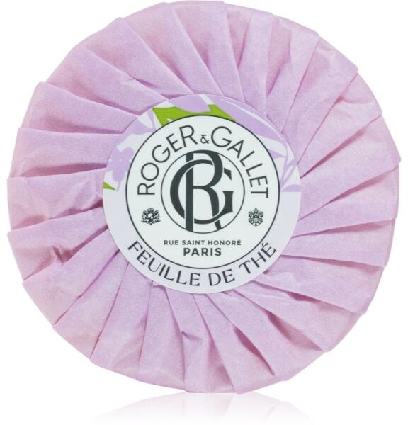 Roger & Gallet Feuille de Thé, 100 g, szappanok nőknek, A szilárd Roger & Gallet Feuille de Thé szappan a minőségi higiénia elengedhetetlen készítménye. Hatékonyan tisztíja a bőrt és távolít el róla minden szennyeződést. Tulajdonságok: mélyrehatóan tisztítja a bőrt táplál és hidratál kellemes illatú Összetétel: legalább 96%-ban természetes eredetű összete