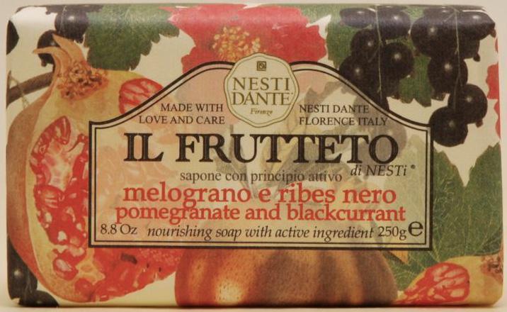 A gránátalma-ribizli színszappan táplálja a bőrt és helyreállítja működését. Összetevők: Sodium palmitoil, Sodium cocoate, Sodium palmkernelate, Aqua, Parfum, Glycerin, Punica Granatum, Ribes Nigrum, Sodium chloride, Tetrasodium etidronate, Tetrasodium EDTA, Citronnelol, Limonene, Hexyl cinnamal, Linalool