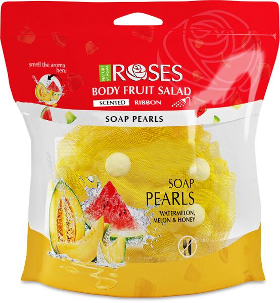 Tusoló Szivacs – Dinnye és Méz illatú beépített aromás szappangyöngyökkel rendelkezik, amelyek gazdag és gyengéd tisztító habot képeznek. Felfrissíti az érzékeket és a bőrt a 100%-ban magával ragadó gyümölcsaromákkal. Termék 2 az 1-ben: 1. Illatos fürdőrózsa; 2. Gyengéd szappangyöngyök, amelyekhez nincs szükség további tusfürdőre vagy szappanra. Használja 10-