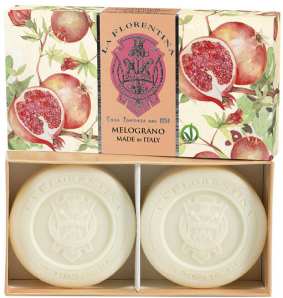Gyönyörűen illatos olasz természetes szappan. Csomagolva egy díszdobozban. Dermatológiailag tesztelt. Készült Olaszországban. Összetevők: Nátrium-palmiát, nátrium-ko-koát, enzim, glicerin, illatanyag, nátrium-klorid, titán-dioxid, tetrátrium-etridonát, tetranátrium-edta. Súly: 2 x 115 g