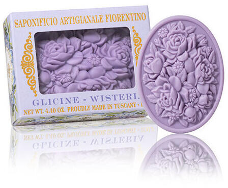 Gyönyörűen illatos olasz természetes szappan. Egyedileg csomagolva egy díszdobozban. Dermatológiailag tesztelt. Készült Olaszországban. Összetevők: Nátrium-palmiát, nátrium-ko-koát, enzim, glicerin, illatanyag, nátrium-klorid, titán-dioxid, tetrátrium-etridonát, tetranátrium-edta. Súly: 125 gGyártó: SAPONIFICIO ARTIGIANALE FIORENTINO