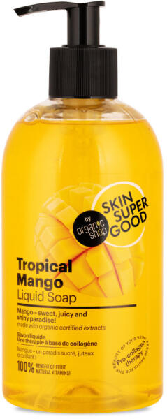 Skin super good „tropical mango folyékony szappan 200 ml Kényeztesd érzékeidet a tópusi illatú gyengéd szappannal, mely segít megőrizni bőröd rugalmasságát és fiatalosságát. Minősített bio kivonatokkal. Aktív összetevők: bio mangókivonat, mangóvaj bio maracujakivonat. Használat: Kis mennyiséggel moss kezet. Összetevők: Aqua, Sodium Laureth Sulfate, Sodium Chloride, Coc