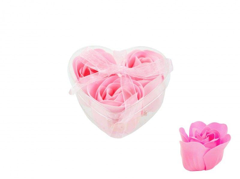 Szappanrózsa szett rózsaszín szív dobozban 3db 4cm 7535 Befoglaló méretek 7.5x7x4 cm