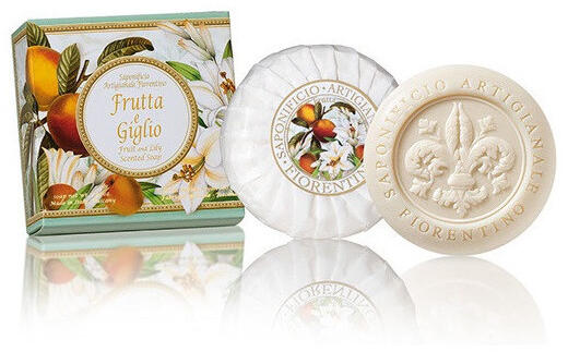 Gyönyörűen illatos olasz természetes szappan. Külön csomagolva papírba és ajándék dobozba. Dermatológiailag tesztelt. Készült Olaszországban. Összetevők: Nátrium-palmiát, nátrium-ko-koát, enzim, glicerin, illatanyag, nátrium-klorid, titán-dioxid, tetrátrium-etridonát, tetranátrium-edta. Súly: 100 gGyártó: SAPONIFICIO ARTIGIANALE FIORENTINO