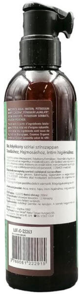 Arcra, testre, hajra, sőt házi kedvencek fürdetésére is!200 ml-es bio folyékony szíriai színszappan; Natur Tanya termék test- és hajápoláshoz.