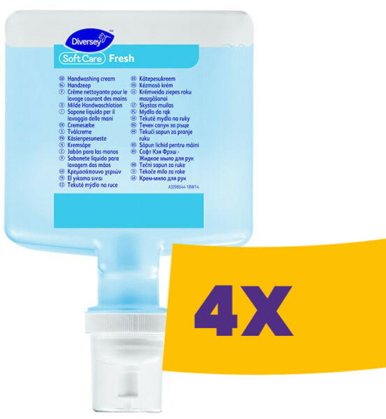 1,3L-es Kézmosó krémszappan, a Diversey IntelliCare adagolóiba kifejlesztve. A Soft Care Fresh egy rendkívül hatékony általános kézmosó termék, amely számos területen alkalmazható, beleértve az éttermeket, irodákat és iskolákat. A Soft Care Fresh egy tetszetős, kék színű, gyöngyházfényű kézmosó, bőrhidratáló tulajdonságokkal. Gyengéd illata kellemes friss illatot