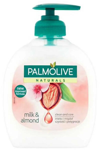 FOLYÉKONY SZAPPAN PUMPÁS 300 ML PALMOLIVE MANDULATEJ A Palmolive Mandulatej folyékony szappan gazdag, tápláló mandulatejjel dúsított formula, amely különösen kíméletes a bőrhöz. A mandulatej hidratáló és bőrnyugtató hatása hozzájárul a puha és sima kéz érzetéhez. A pumpás adagoló biztosítja a könnyű használatot és pontos adagolást. Előnyök: tápláló és hidra